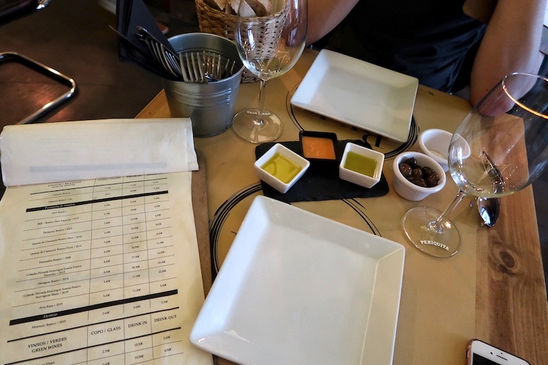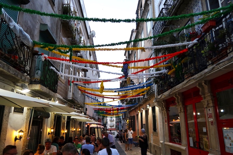Ce qu’il faut savoir avec les restaurants portugais (comme les italiens, d’ailleurs), c’est qu’au départ, les serveurs arrivent avec des olives, du pain et quelques sauces, par exemple. Parfois, ils nous le proposent, d’autres fois, ça nous est imposé. Dans tous les cas, comptez en moyenne 3-4€ pour ce « couvert ». On s’est ensuite baladé jusqu’à 22h environ, en admirant les décorations lumineuses et les guirlandes accrochées un peu partout, les bars animés et leur musique … C’est sympa de se promener le soir, la chaleur redescend et le quartier s’anime !