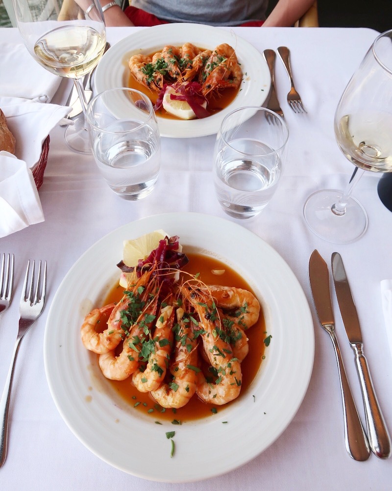 La dernière bonne adresse pour aujourd’hui, c’est bien celle-ci ! Restaurant juste sous le Pont du 25 avril et face à un petit port, le spot parfait et romantique. Au-delà de ça, on y mange vraiment bien et les serveurs sont très gentils. Il est assez cher, mais la qualité y est. J’ai succombé à mon pêché mignon … les gambas ! Grillées, qui plus est, un vrai délice. En plat, j’ai pris du loup de mer grillé, vraiment délicieux, lui-aussi ! Bref, nous avons vraiment, VRAIMENT bien mangé. Les avis internet nous parlaient de bruit à cause du pont, c’est vrai. Quand le train passe, il faut parler plus fort, mais l’endroit est tellement agréable qu’on oubli vite ce défaut. Pour finir, toujours pour le côté romantique, balade sur le port et coucher de soleil face au pont. Magnifique !