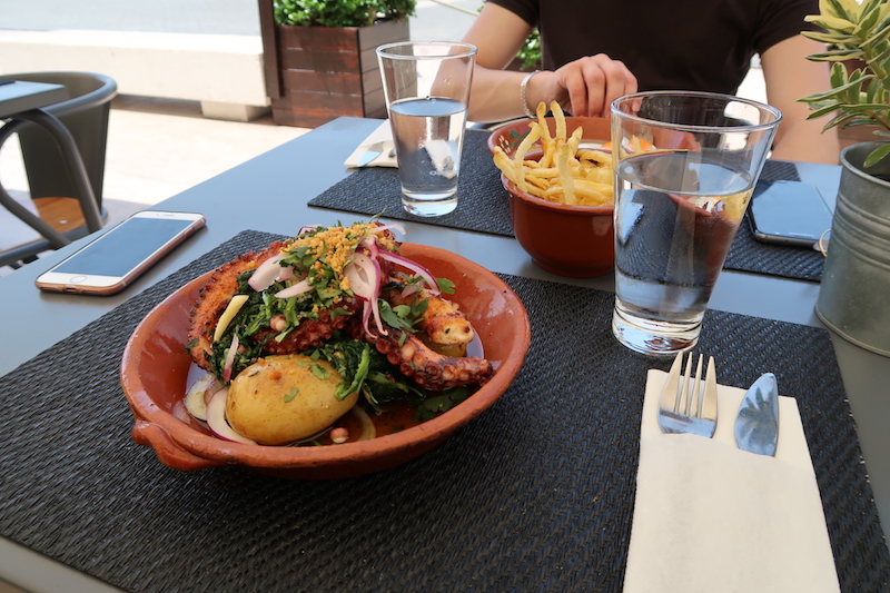 Étant juste à côté de l’eau, on s’y est baladé jusqu’à aller sur la Praça do Comércio, cette grande place donnant sur l’Arco da Rua Augusta. Pour y monter et admirer la vue, comptez 2,50€/personne (vraiment rien quoi !). De là-haut, on aperçoit la Catedral Santa Maria Major et l’ascenseur de Santa Justa pris la veille. Calme, paisible, peu de choses à dire mais tellement joli. En sortant, on s’est dirigé vers les ruelles pour trouver un restaurant, qui se trouvera finalement sur la grande place. Steak portugais pour le chéri et salade de poulpe pour moi, un régal !