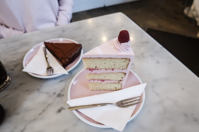 Le lendemain, nous voulions voir Buckingham Palace pour la 1ère fois toutes les deux, puisque déçues de voir que Big Ben était entouré de matériels de rénovation … impossible à prendre en photo. Pour consolation, on est allé vers Peggy Porschen Cakes, cette petite boutique toute rose hyper instagramable (un peu chère aussi) où les gâteaux ont tous une forme parfaite ! Après une longue marche, ça nous a fait du bien. En sortant, nous sommes passées par un petit parc (je ne me souviens plus du nom), où j’ai fait la connaissance d’un petit écureuil trop mignon qui est venu tout près de moi !